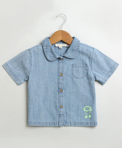 Sweetlime By AS introduces a Cotton Denim Shirt & Shorts Co-ord Set for boys with a neon green Koala printed on it. The wooden buttons on the shirt and shorts add a touch of classic style making it perfect for everyday wear, playdates, or casual outings. The shirt has short sleeves with a cute front pocket. The elastic waistband on the shorts ensures a comfortable fit. This shirt & shorts set combine comfort and style effortlessly for your little one's wardrobe!