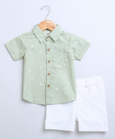 Sweetlime By AS Olive Leaf Printed Cotton Linen Shirt & Shorts Boys Co-ord Set