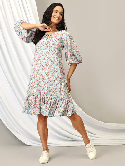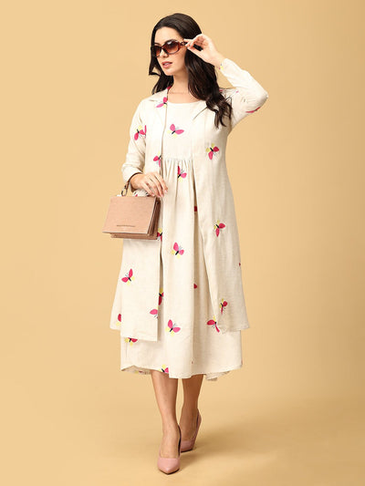 - Grey Floral Collar Dress