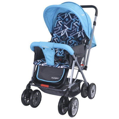Little Pumpkin by R for Rabbit - Kiddie Kingdom Stroller We understand the necessity of young parents and bring the Safe and Colourful Pram for your Little One called Kiddie Kingdom Stroller. It is a compact & Travel - Friendly Lightweight Stroller. It is designed by keeping young moms' necessities. It has a convenient one-hand fold mechanism & has a storage basket. Three - Position Recline keeps baby comfortable. Colorful Canopy is designed to protect the kid from sun coverage with a peek-a-boo window. Wheels are all-terrain & have front suspension for a smooth ride.