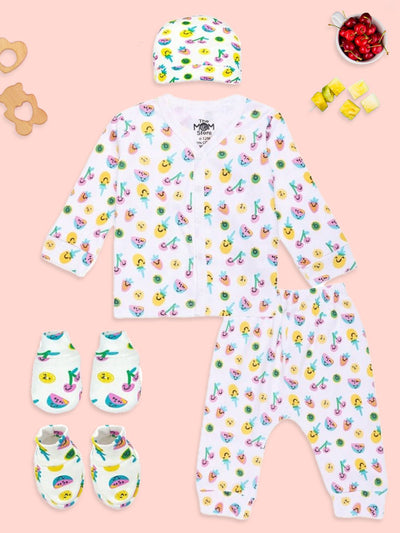 - Combo Of Infant Set And Mittens, Booties Cap set- Summer Melon
