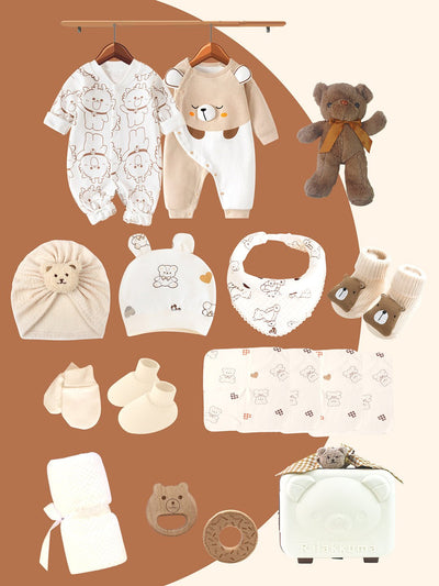 - 21 Pcs Assorted Gift Hamper Set: This stunning 21 pcs Gift Hamper set is a beautiful assortment of exclusive essentials for a baby. This hamper includes •1 pair of Mittens •1 cute 3d frog Designed Baby Cap • 1 Cute Baby Cap •4 Napkins •2 Beautifully designed Full length Rompers with full sleeves keeping the child warm • 1 Full Length Fur Inner Romper especially designed for Winters •1 Bath Book Toy •2 Rattle Toys •1 3d Toy Socks •1 pair of Booties • 2 Bandana Styles Bibs •1 beautiful Panda designed Gift Box .