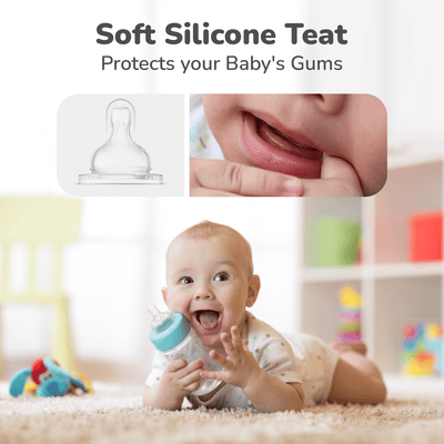 - Super Soft Silicone Nipple: Made with the soft silicon, the nipple mimics look and feel of the breast and is best for the gums of babies