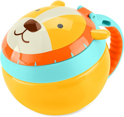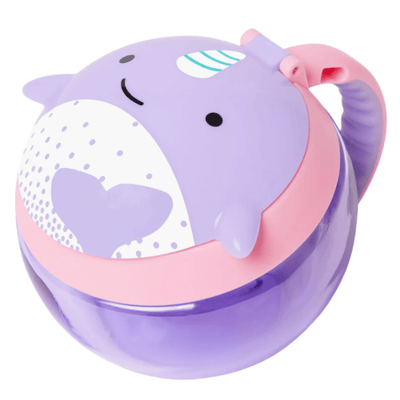 Perfect for toting munchies, this cute cup encourages independent snacking without the mess. The easy-grip handle is sized just right for little hands, and the snap top lid ensures food stays fresh. The flexible inside opening keeps snacks from spilling out - even if its tipped over. With two lids theres less mess and moms bag stays crumb-free!