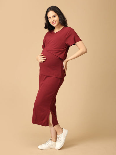 Wine & Unwind Ribbed Maternity and Nursing Co Ord Skirt Set