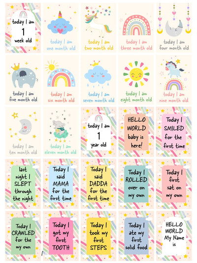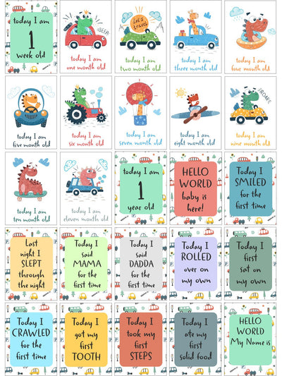 Your little one's growth is a precious memory. It's amazing how fast babies grow each day and month to month. Keep track of your precious memories each month with your little one. These super cool cards with fun designs will help you track your baby's milestone and those very first moments close forever.