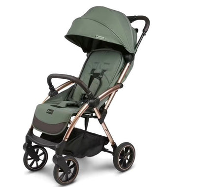 The stroller has larger wheels, allowing you to take your child on terrain and explore the outdoors. Because of its larger wheels, more space in the base, and unique folding