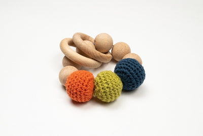 This stylish hand-crocheted wooden baby rattle is perfect for little hands to hold and provides a gentle and soothing rattle sound for a baby's hearing. It provides baby with plenty of perfect opportunities to grasp and hold. The colorful crochet will attract their attention easily. The rattle sound has a soothing effect on the baby and also helps in sensory skills development. The perfect size makes it convenient to carry out, so that baby can enjoy happiness at any time. It is packed in a box that is very suitable for baby shower gift or a birthday gift.