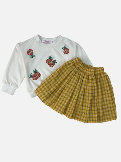 Little Surprise Box 2pcs Yellow Pineapple Sweatshirt, Skirt Winterwear set for Girls -2-3Y