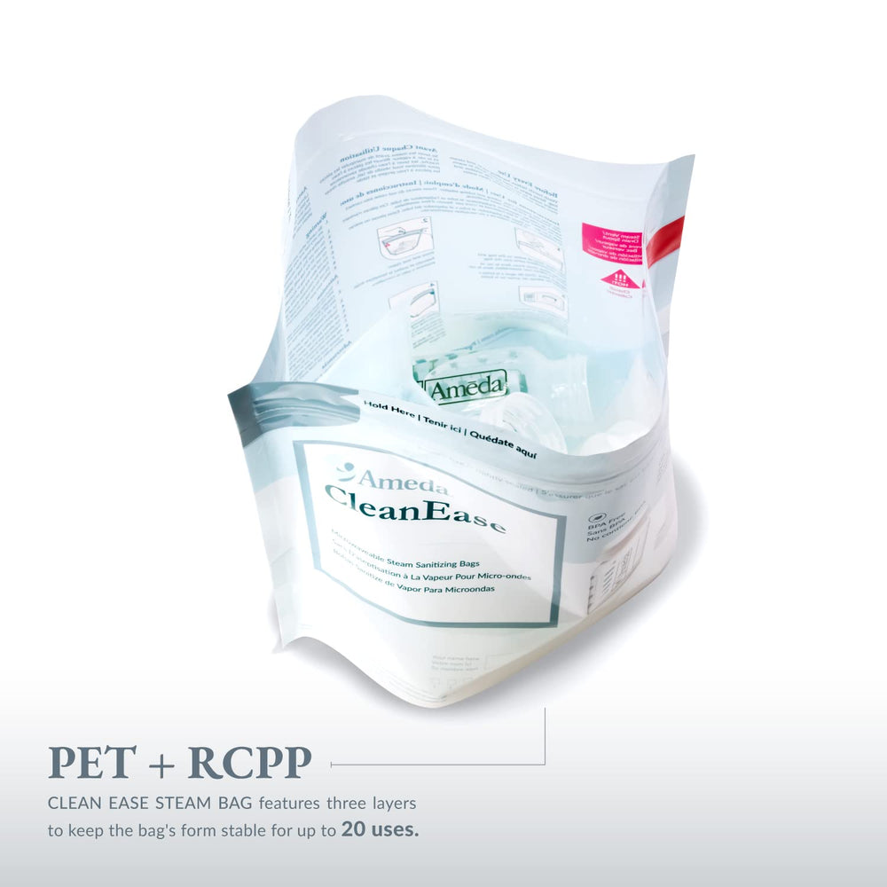 - Ameda's CleanEase Steam Bags feature three layers to keep the bag's form stable for up to 20 uses. Reinforced side seams for ultimate protection