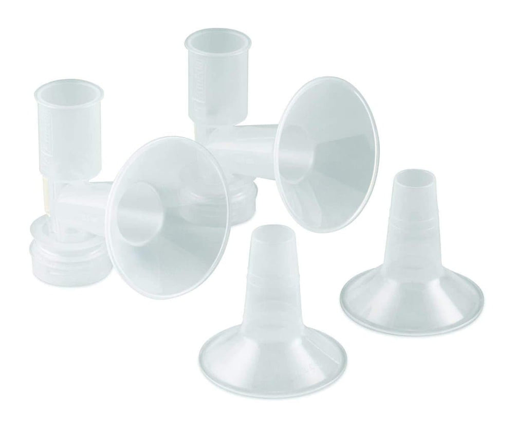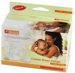 The Ameda Custom Fit Breast Pump Flange Kit helps make breast pumping comfortable and helps mom pump more milk when the fit is just right. The breast flange is the funnel shaped piece that cups your breast. A good fit is important! Make sure your breast flange is not too small or too large. Using the wrong size will cause discomfort and reduce the effectiveness of your pump. If pumping causes discomfort, even on a low suction setting, you may need a different breast flange size. All Ameda® HygieniKit® Milk Collection Systems come with a standard size 25.0mm flange that works well for many moms, but we also offer a range of different flange sizes and inserts – our CustomFit Flange System – to ensure you find your best fit.