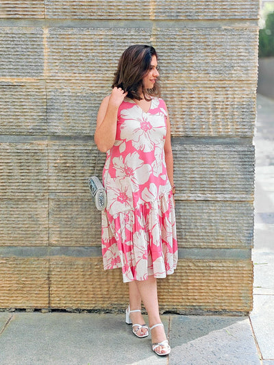 •Asymmetrical Tier Dress with 1 Patch Pocket at Front