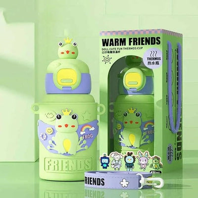 CuddleNest Stainless Steel Kids Water Bottle – 500ml | Double Wall, Straw Lid, Cartoon Print