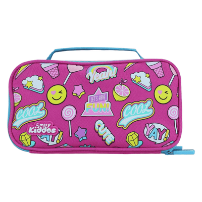 Smily Kiddos Multipurpose Pencil Case Rainbow Unicorn Theme Purple is a stylish and durable pencil pouch with a hard nylon exterior and spacious dual compartments. Perfect for school or college, it easily holds pens, pencils, erasers, and more. With its cute swan design and vibrant color, it’s the ideal stationery organizer for kids and students.