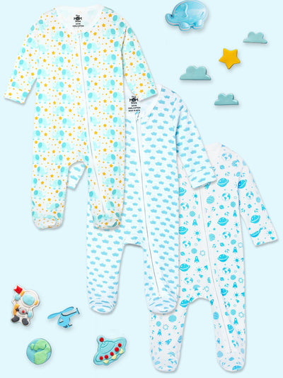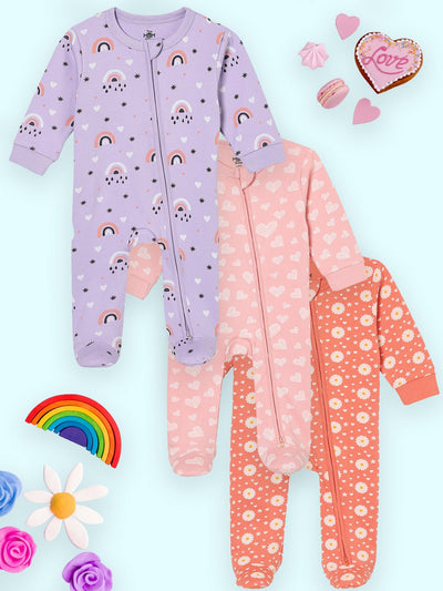 - Combo of 3 Printed Baby 2 Way Zipper Romper