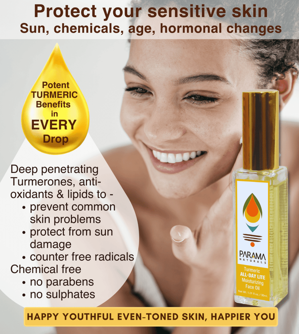 - For an even skin tone, with natural sun-protection by turneric and sesame oil