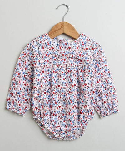 Sweetlime By AS introduces a Red & Blue Floral Print Organic Cotton Dress with a matching Bloomer. The dress has long sleeves and elasticated cuffs. It has delicate ruffle detailing along the neckline. The matching bloomers complete the set with a soft and secure fit. Crafted from lightweight, breathable fabric, this set ensures both style and comfort for your little girl.