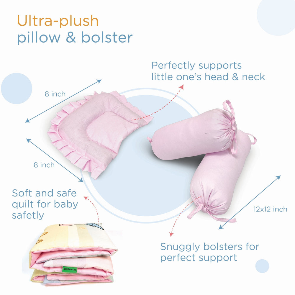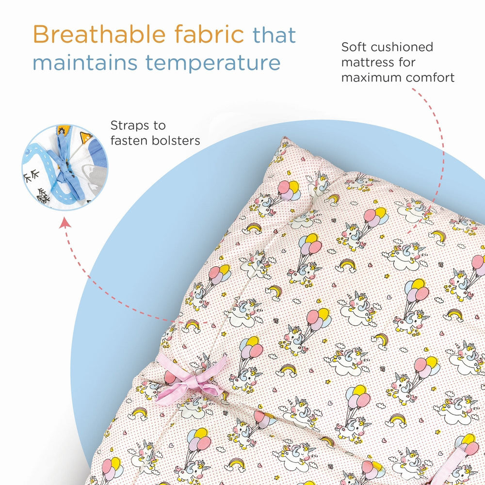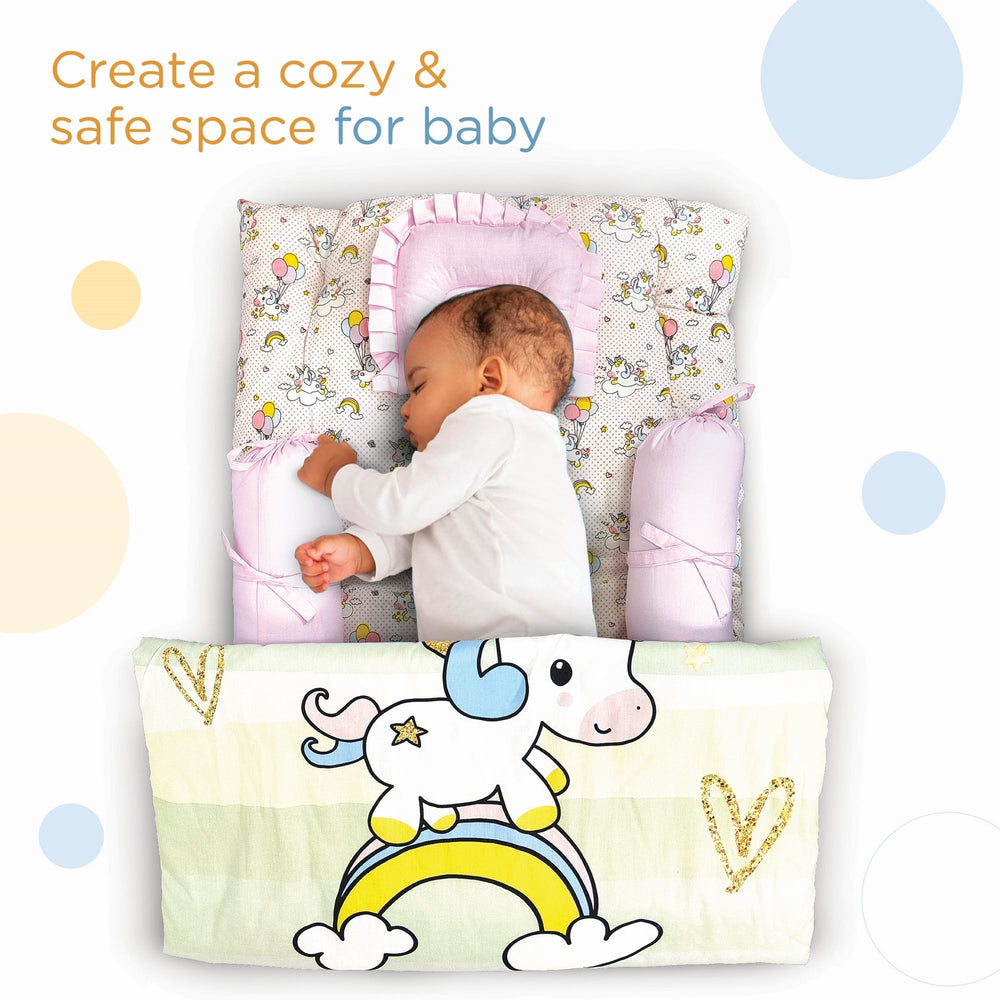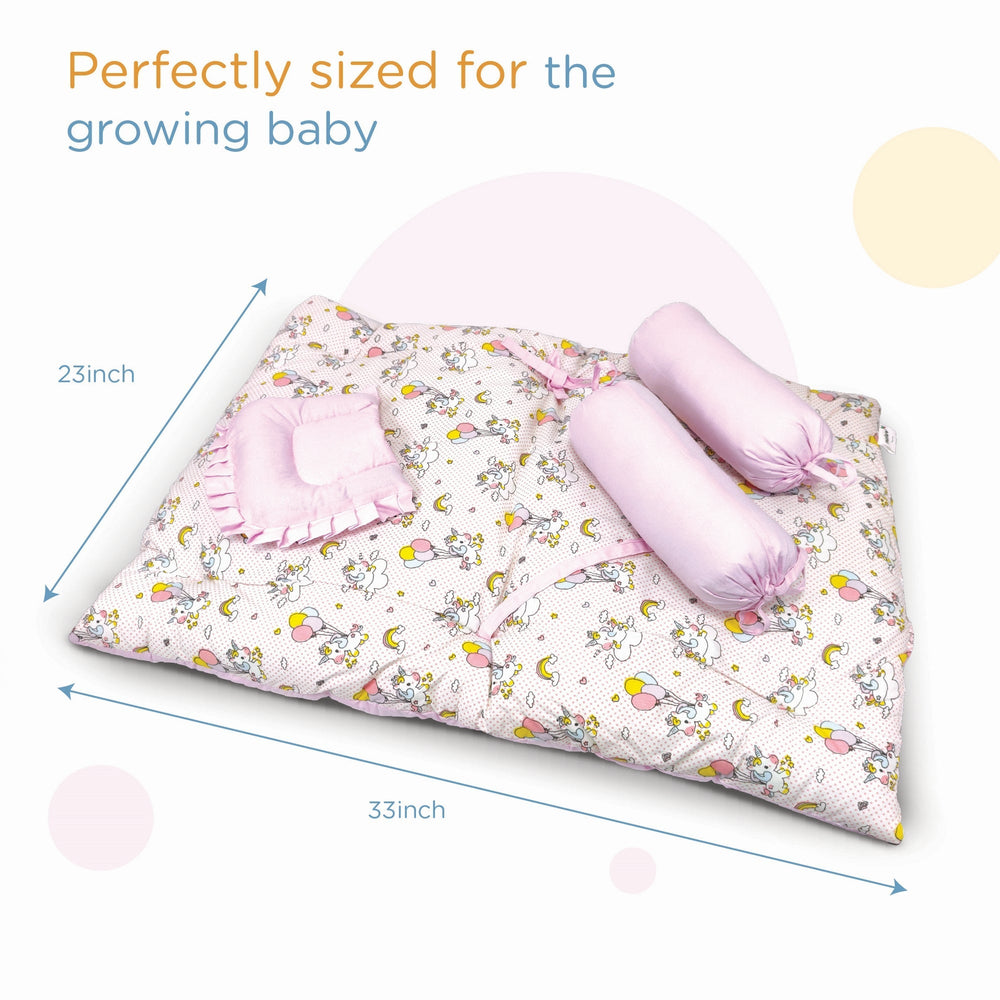 Nuluv Cotton 5 PC Gadda Set -Unicorn with 100% Cotton 180 TC and antimicrobial & Hypoallergenic Filling, Cotton Bed,2 side round Pillow,1 Head Pillow,1 Quilt
