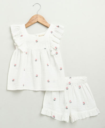 Add a splash of fun and comfort to your little one's wardrobe with the Frog Print Cotton Co-ord Set by Sweetlime By AS. This charming two-piece outfit features a lightweight short-sleeve shirt and matching shorts made from breathable double cloth cotton fabric —perfect for all-day play. The cheerful frog print with playful expressions brings personality and joy to the outfit, while the soft neutral base colours keep it versatile and easy to style. Designed with wooden-style buttons and an elastic waistband, it's as practical as it is adorable. Perfect for sunny adventures, playdates, or relaxed lounging, this set will make every day feel like a leap into fun! Material : 100% Cotton Double Cloth