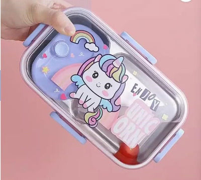 Choose from three vibrant designs — Blue Space, Pink Unicorn, or Green Dino — and turn lunchtime into an exciting adventure! Lightweight, easy to clean, and perfectly sized for school bags, it's the ideal tiffin box for active kids.