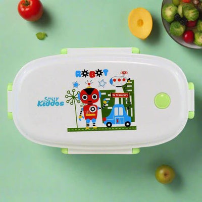 Smily kiddos Lunch box is a bestseller for a reason! it has an awesome reusable design that encourages a waste free lunch time with 2 individually sealed compartment to store all your favorite snacks! Plus, This super -size is also deep enough to fit a small piece of fruit making it perfect for school lunches!