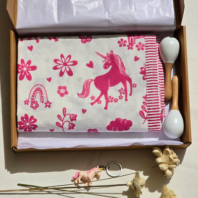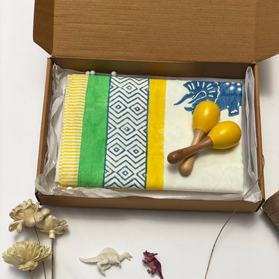 Our cotton muslin fabric infant-to-toddler personalized gifts set is designed for gender-neutral gifting. It features a luxuriously soft baby size dohar, crafted from 100% cotton muslin fabric, offering a breathable layer that keeps your little one cozy without overheating. The centre has a stunning print of our Mischievous Monsters design, which beautifully reflects through the top and bottom layers. From mischievous smiles to playful antics, these monsters are sure to capture your child’s imagination and spark their creativity. Use it as a cover-up or for tummy times for infants and a snuggly wrap during story time for your toddlers.