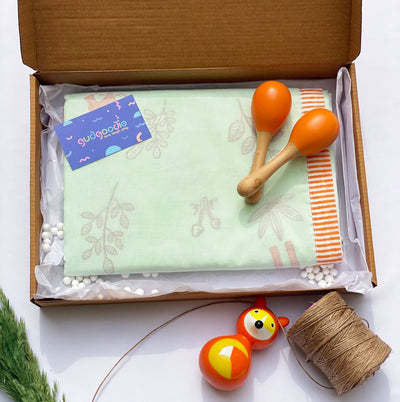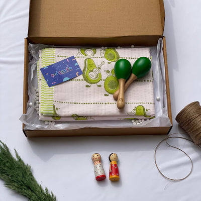 Complementing the dohar is a pair of charming wooden maracas, designed to entertain and stimulate your baby’s developing senses. Safe for tiny hands, encouraging sensory play and early musical interest.