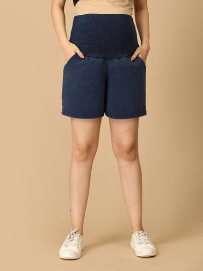 Stay warm, comfortable and stylish with these smart and awesome pair of Knit Denim Shorts with belly support to keep you on the go!