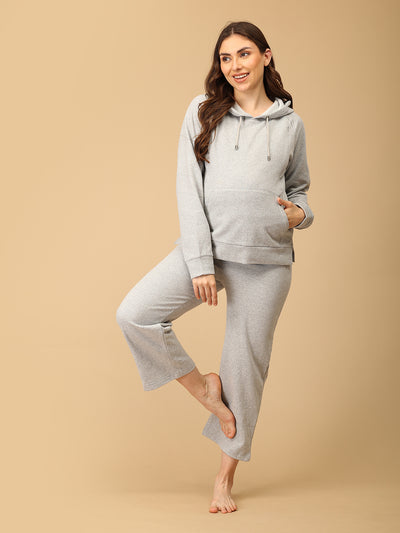 Golden Grid Maternity And Nursing Hoodie Pajama Loungewear Set
