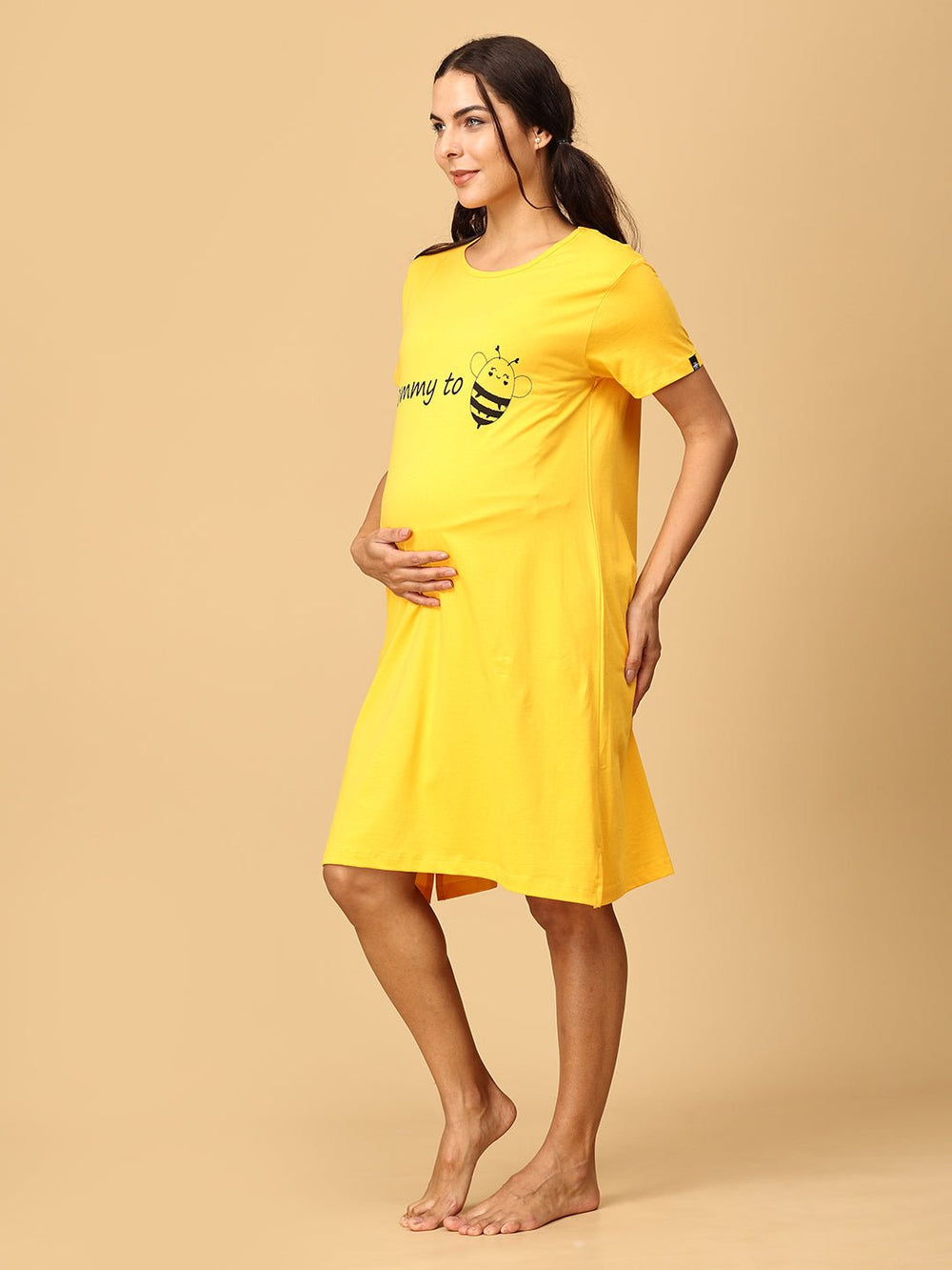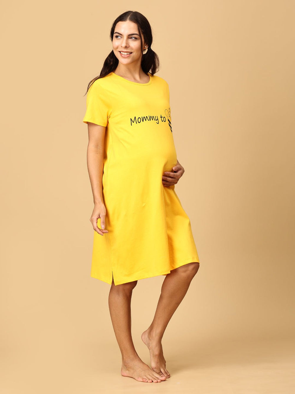 Mommy To Bee Maternity T- Shirt Dress is super comfortable dress for maternity a will keep you at ease the whole day. Made of 100% Cotton which super comfortable and the loose fit helps the belly grow easily.