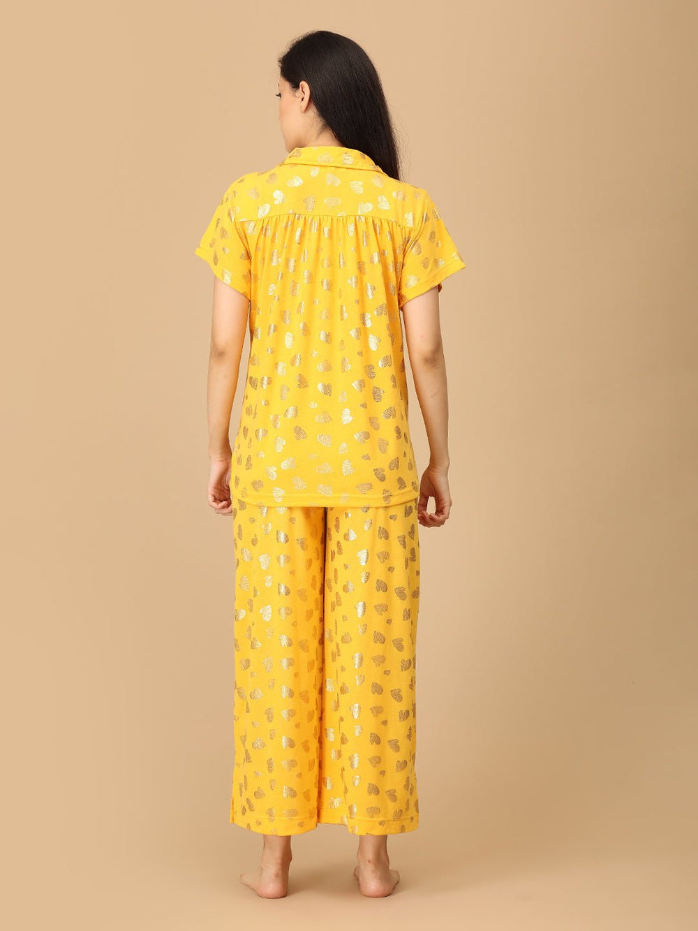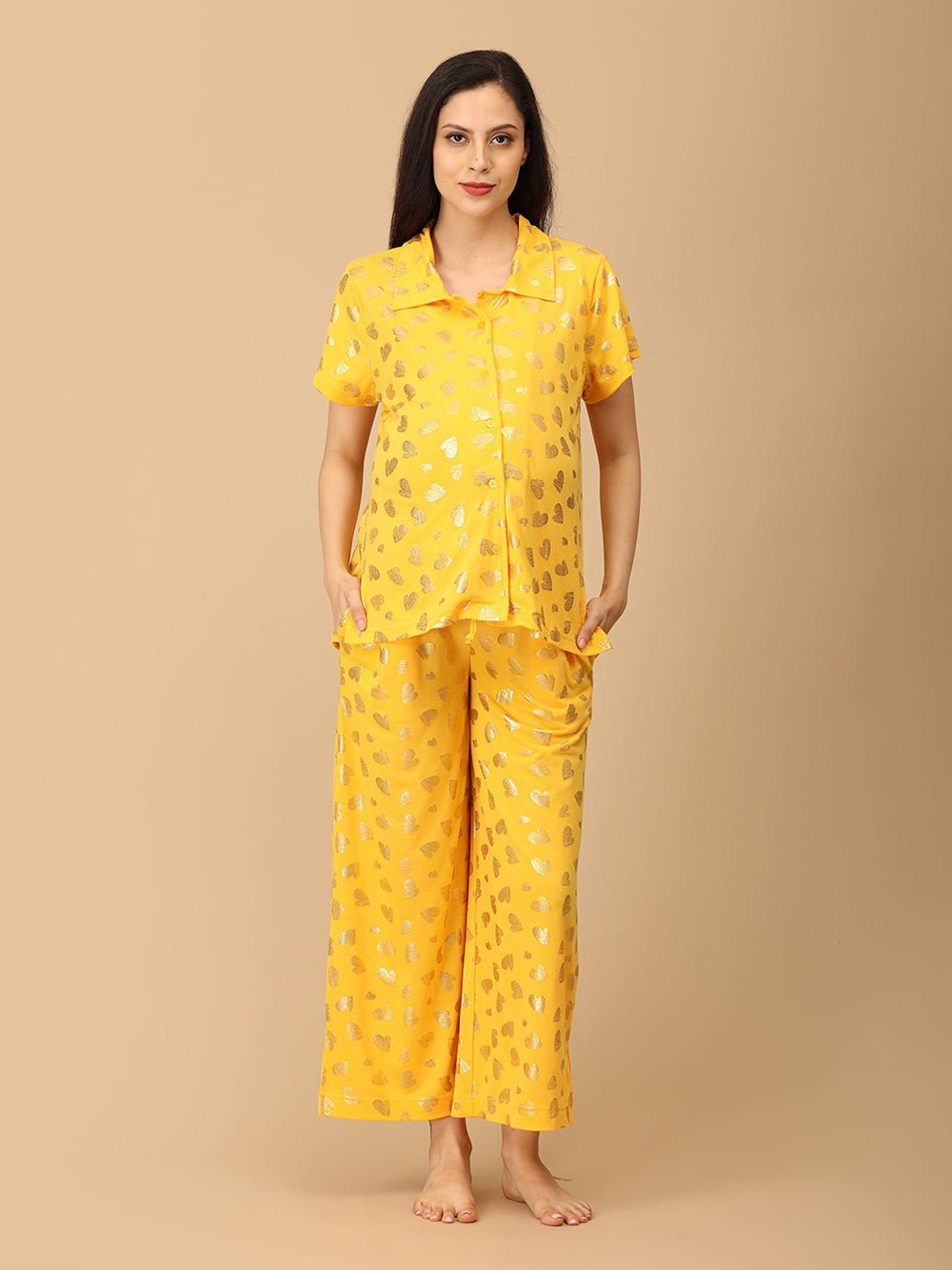 •Yellow Maternity and Nursing Pajama Set with Silver Foil Print