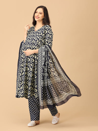 Verdant Ease Maternity and Nursing Kurta Set With Dupatta