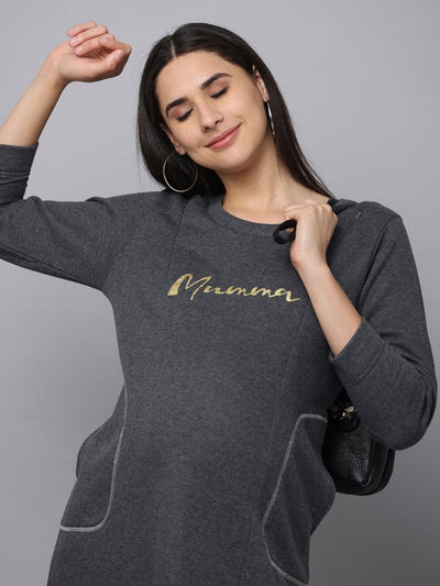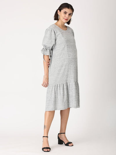 - Red Terry Lurex Maternity and Nursing Winter Dress