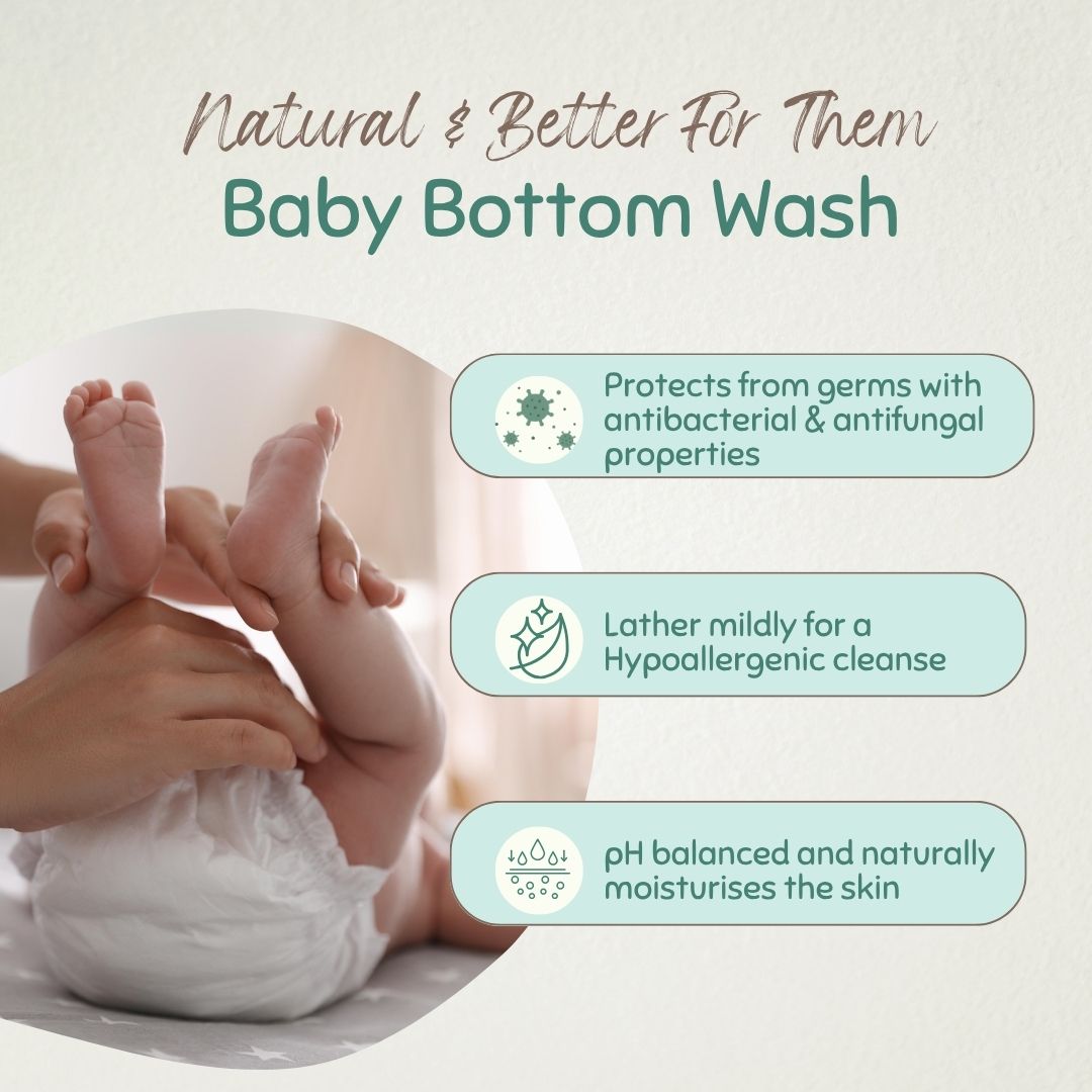 Introducing our Daily Care Combo – the ultimate solution for your baby's daily hygiene needs! This meticulously crafted combo includes a Baby Shampoo, Baby Body Wash, and soothing Bottom Wash. Natural products infused with natural ingredients like soapnut, neem, almond oil, and flaxseed oil to provide gentle care from head to toe. Our Bottom Wash not only cleanses during diaper changes but also acts as a protective shield against harsh chemicals found in baby wipes, thanks to soothing ingredients like soapnut and neem, preventing diaper rash and ensuring your baby's delicate skin stays safe and comfortable. Meanwhile, our Baby Shampoo takes center stage, gently cleansing your baby's scalp while maintaining a healthy balance of oils to promote hair growth and prevent scalp irritation. The Baby Body Wash provides a nourishing bath experience, leaving your little one's skin soft and supple. With our Daily Care Combo, every bath time becomes a delightful experience, free from harsh chemicals and full of natural goodness, ensuring your baby stays fresh and healthy every day.