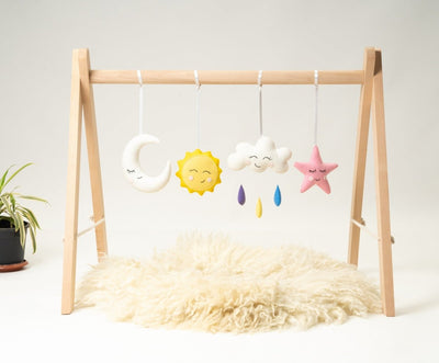 Designed with Montessori educational concepts, Rocking Potato™– Baby Play Gym promote sensory development and activate gross motor skills such as reaching, grabbing, finger dexterity, and hand-eye coordination. When you’ve got an infant at home, a good baby activity gym is worth its weight in gold. These baby gym are perfect for a baby shower, newborn baby gift, housewarming gift or any other occasion. Our modern and hand made designs are sure to be loved by any gift recipient. Unlike other large floor toys, our baby gyms take up a small footprint and can be easily folded and put away when not in use.