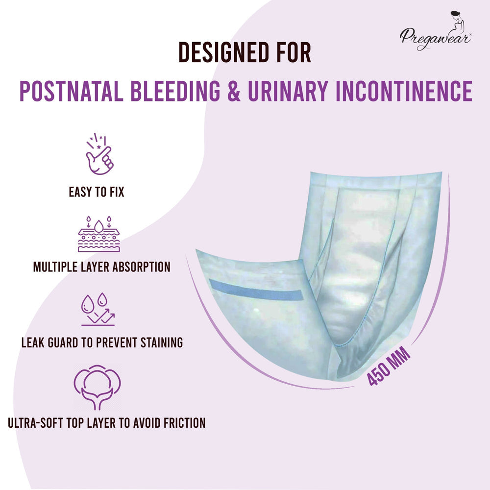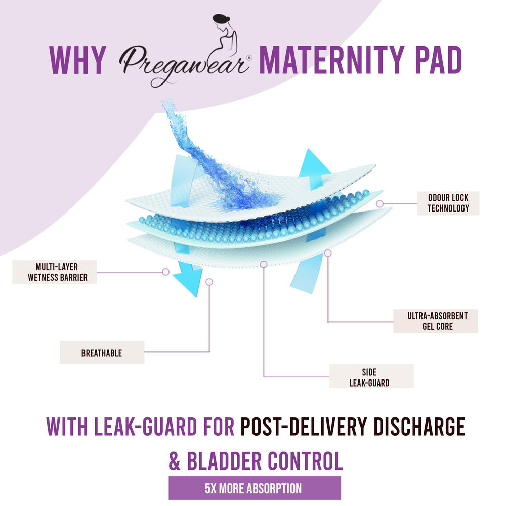 - WHY PREGAWEAR MATERNITY PAD? : Ideal for VERY HEAVY DISCHARGE immediately after delivery. It may vary from 1-14 days post-partum. Easy to fix disposable Maternity Pad prevents any washing hassles and helps in management of any messy discharge. Use like a regular pad and discard once loaded. Spend the extra time taking care of yourself and nurturing the baby