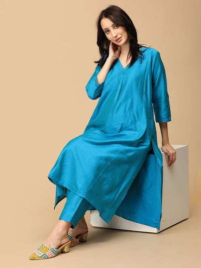 - Peacock Teal Maternity And Nursing Silk Kurta Set