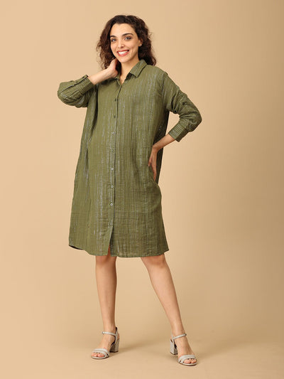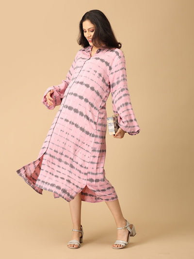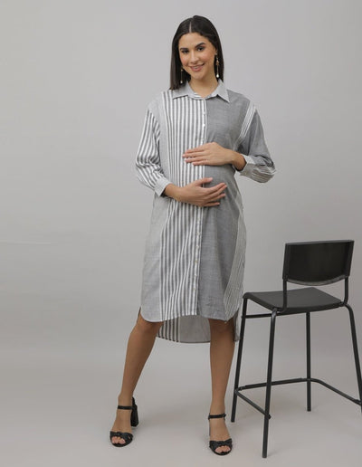 Chrome Pearl Maternity and Nursing Oversized Shirt Dress