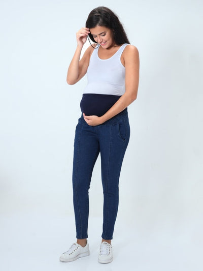 Elasticated Waist Paneled Maternity Denims with Belly Support