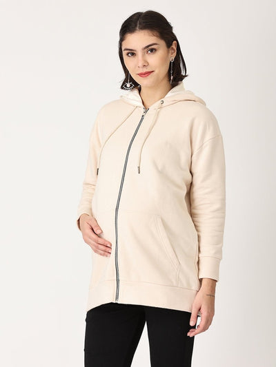 Whispering Cream Oversized Maternity Zipper Hoodie