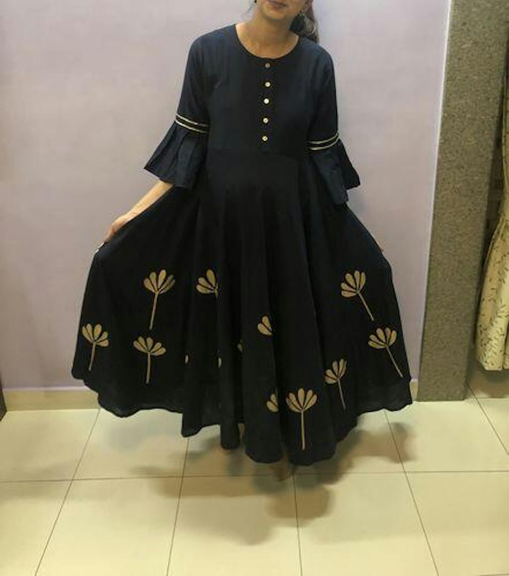Look gorgeous dressed in this navy Flared Floral Gold Foil Print Maternity and Nursing Kurti, ideal wear for a day/night time celebration. Our feeding kurtis are made using soft quality natural fabric, Kurti has been designed keeping the requirement of the mommies in the mind and boasts of :