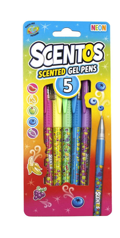 From the premium scented stationery brand Scentos, this Scentos 5 Count Scented Neon Gel Pen Set contains sweet-scented gel pens in 5 vibrant neon colors! Your child will love drawing, coloring, and creating away with this value-packed coloring set. Easy to use, safe and non-toxic, this gel pen set is great for kids and anyone who wants great-smelling, neon-bright, bold creative drawing and coloring fun! Scents included: watermellon, banana, apple, blueberry and grape. Designed in the USA, the products are completely safe and non-toxic and easy to use for kids of ages 3+ years.