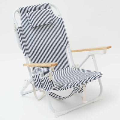 The Lounger Chair Sand is a summer must-have for those who take lounging in the sun seriously. No matter what your preference is, you can get comfy with 6 adjustable settings for head, waist and leg area. Featuring a fully removable, water and fade resistant coating, it is suitable for both indoor as well as outdoor use. This lightweight folding seat is portable and includes its own carry bag for easy transport and storage. Made to stand the test of time and come with you on all of your adventures, The Folding Seat Summer Stripe is a timeless classic for the modern beachgoer.