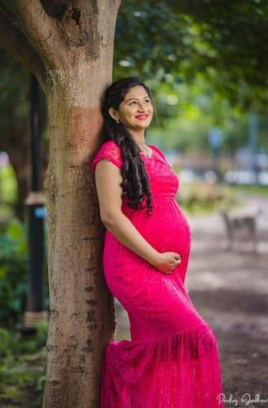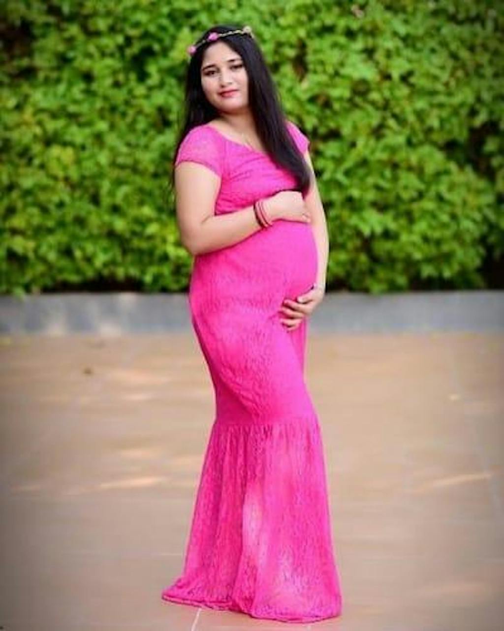 This spring, flaunt your pregnancy with this off-shoulder lovely Hot Pink maternity maxi dress. Perfect for baby shower and pregnancy photoshoot, this dress is made of soft Lace fabric that accentuates your curves, and makes you look elegant and classy. The comfortable fabric supports the belly and adds grace to the overall look. This dress will add to your radiance and pregnancy glow and is long so that it gives a trail effect!