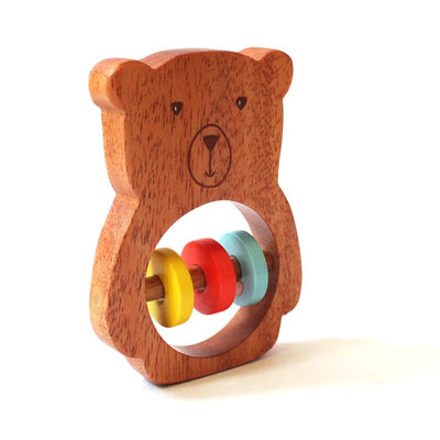 A handcrafted baby rattle designed to look like a cute patched-eye pirate! The bright red and white colors and fun shape could make this classic wooden rattle one of your baby’s favorite toys.