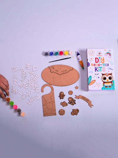 The kit comes fully equipped with a set of 6 vibrant, non-toxic paints, sparkling glitter, soft pom poms, and Fevicol glue—making it easy and safe for kids to create their own magical décor. Ideal for birthdays, weekend projects, or creative playtime, this craft set not only enhances fine motor skills and color recognition but also gives children a chance to express their personality right on their bedroom door!