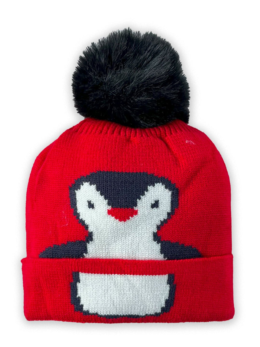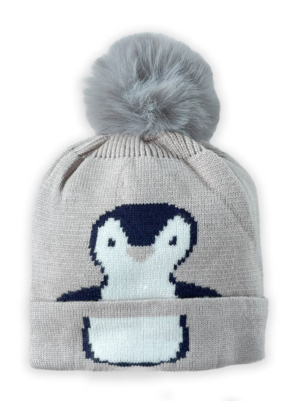• Baby Penquin Knitted Cap with Faux Fur