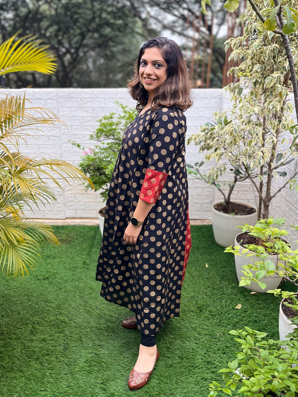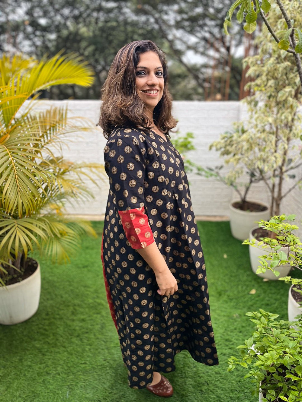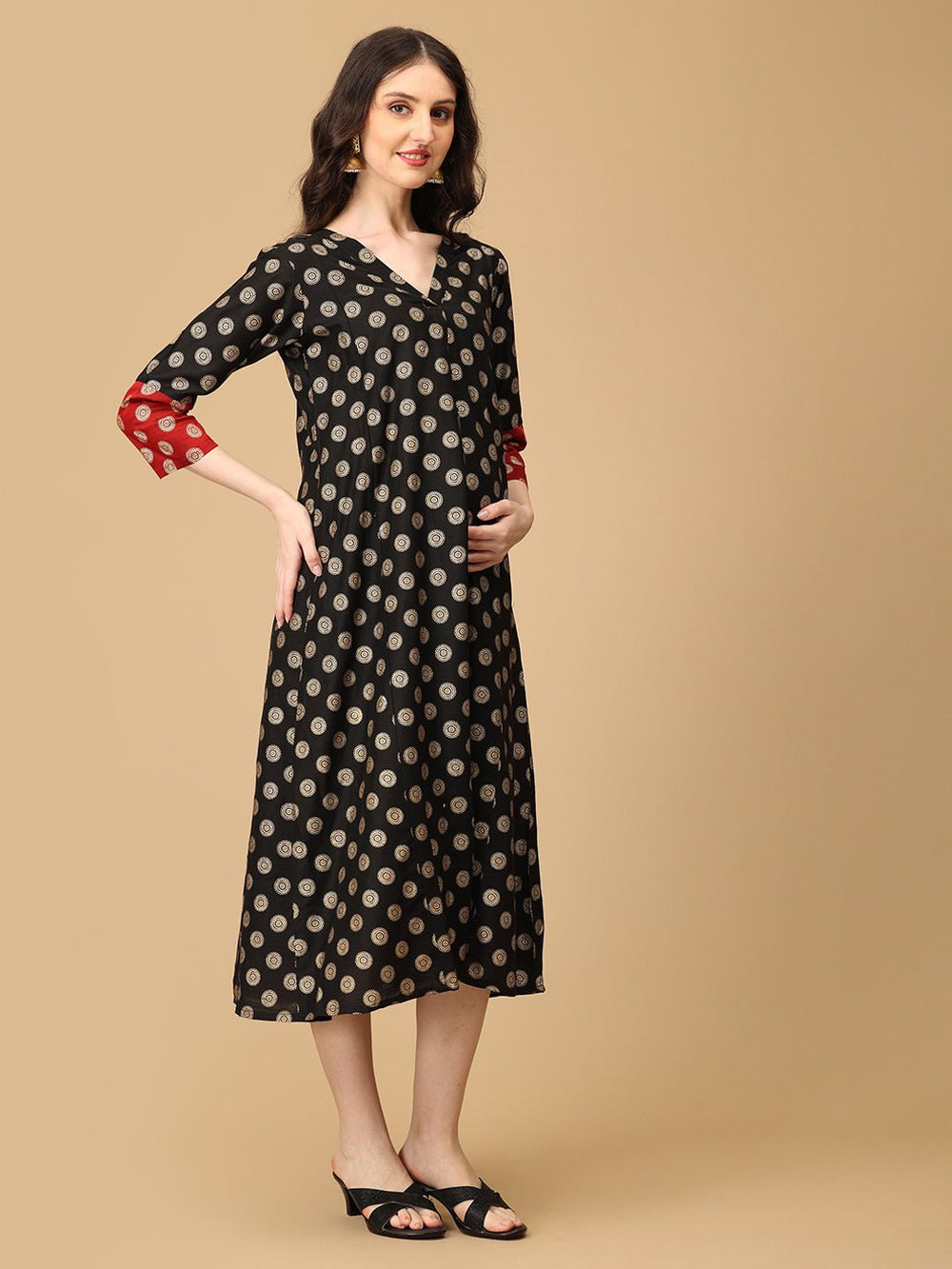 - Black Maternity and Nursing Silk Foil Printed Dress