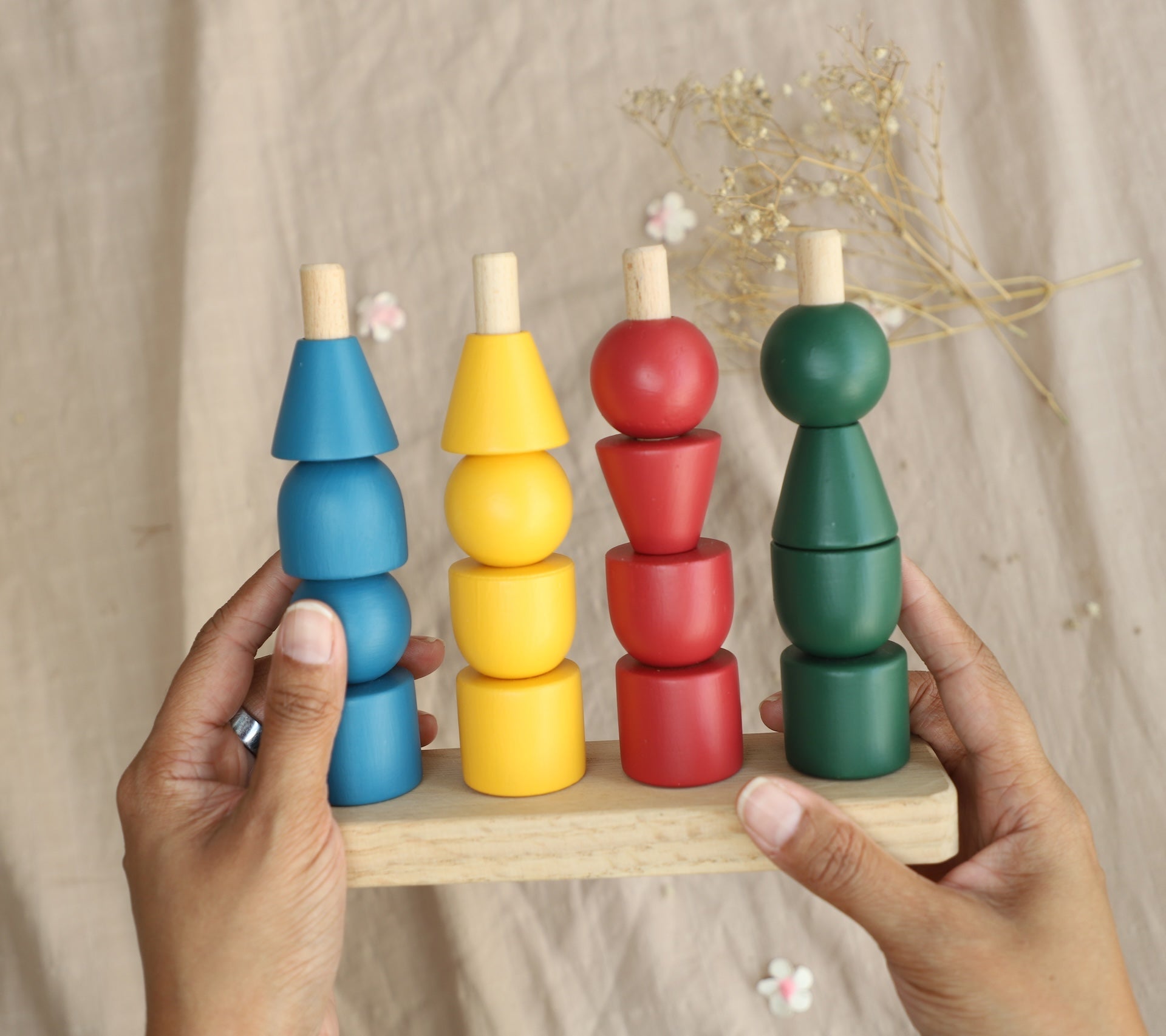 Fine Motor Development: Enhances grip, hand-eye coordination, and dexterity through stacking and sorting.