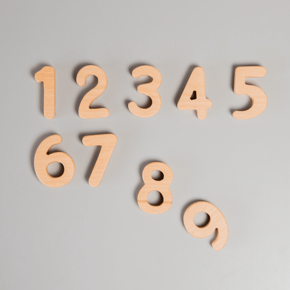 WOODEN NUMBERS SET beautifully crafted and hand-finished with non-toxic materials. This set includes numbers 0-9, designed to make early math learning fun, engaging, and hands-on.